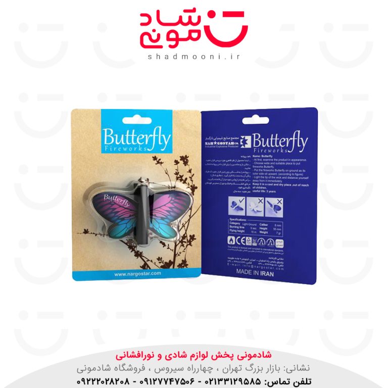 پروانه آتش بازی یکی از محصولات متفاوت و جذاب هست که داخل بسته آن 4 عدد از محصول وجود دارد. از طریق فتیله آتش بازی روشن میشه و تا ارتفاع 10 متر پرواز میکنه و 10 ثانیه زمان سوختش هست. این کار برای کودکان مناسبه و یکی از لوازم چهارشنبه سوری محسوب می شود.